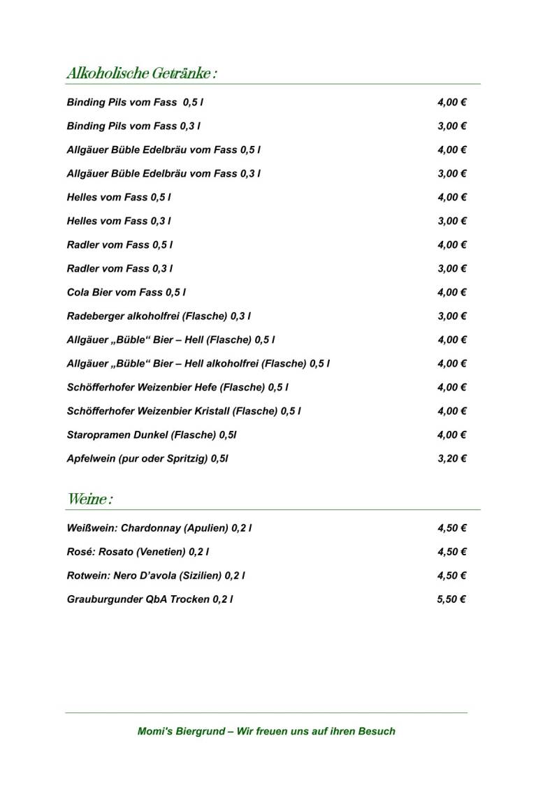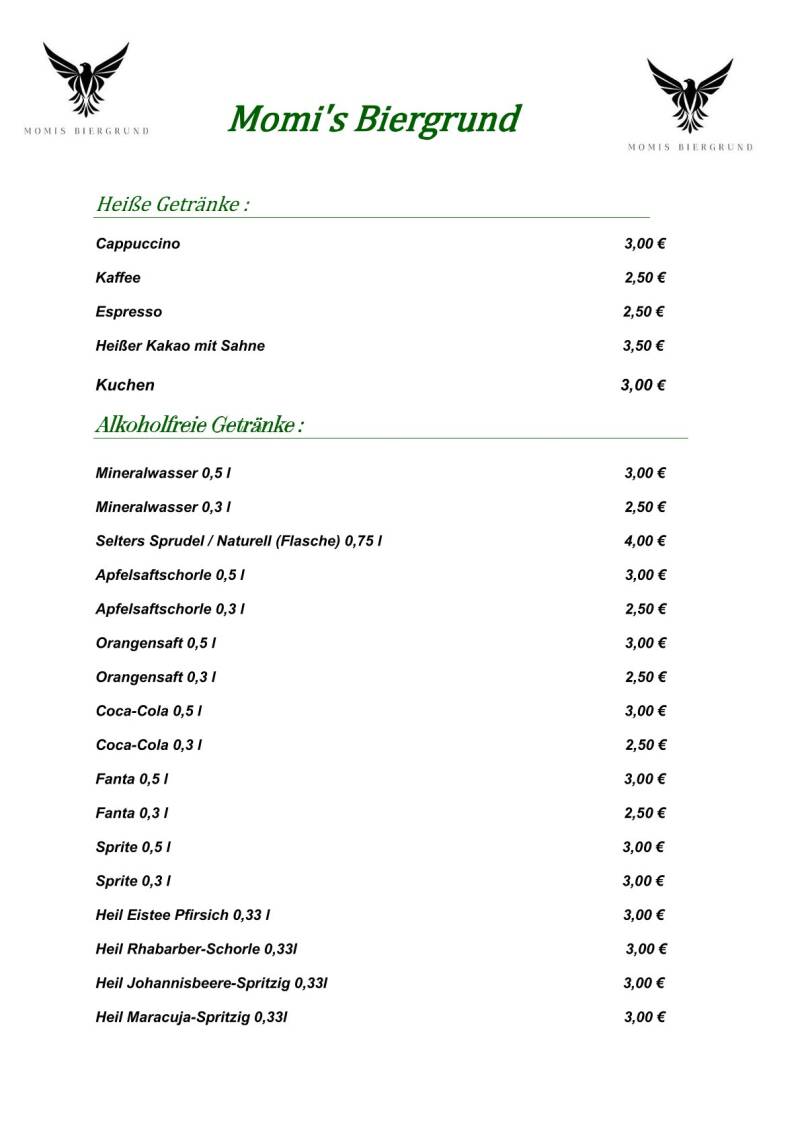 Momis Getränkekarte